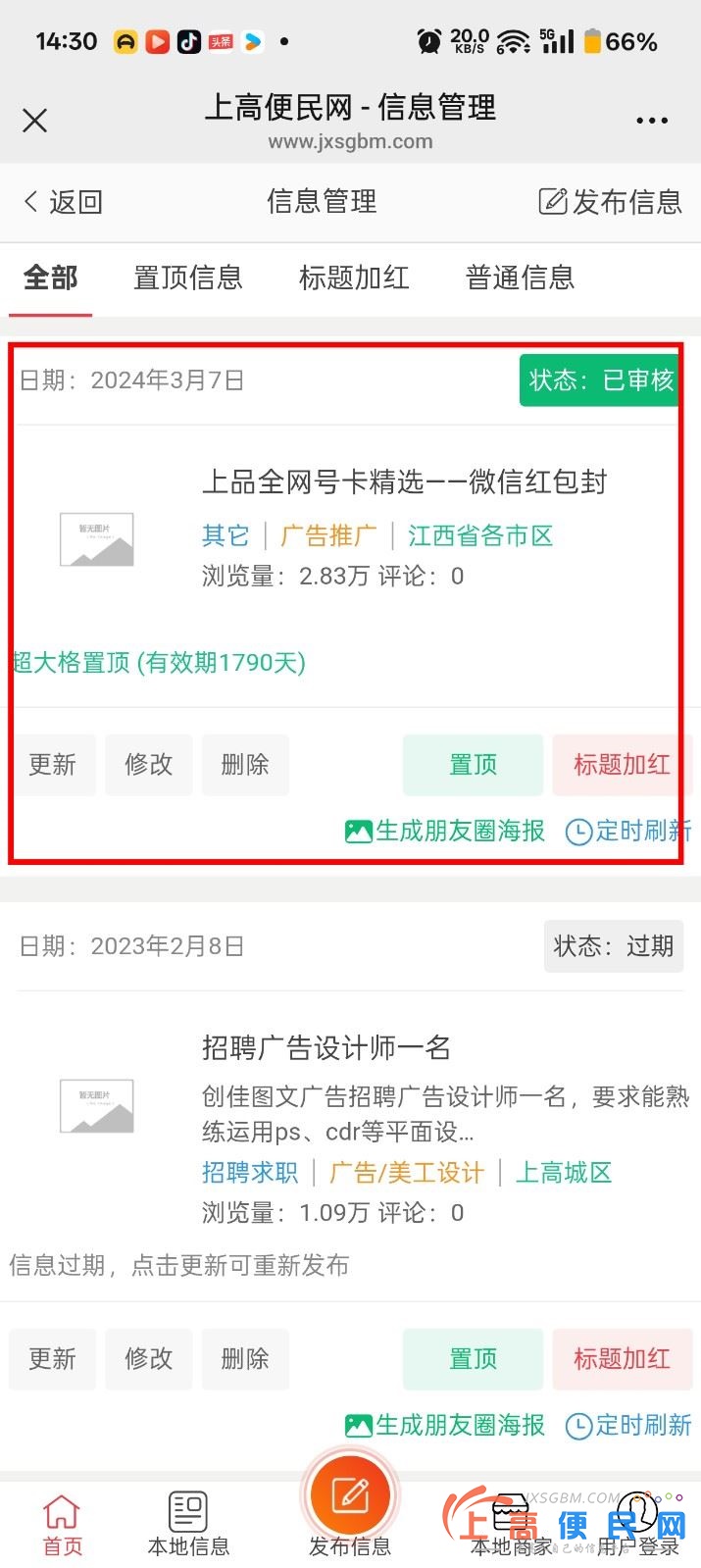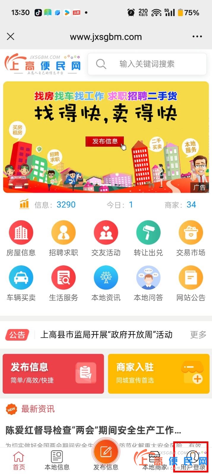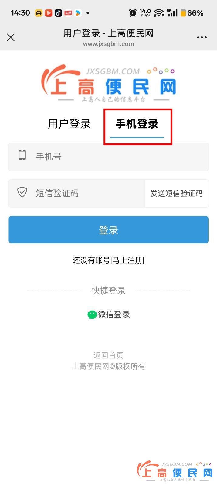 未登錄用戶發布的信息,忘記管理密碼如果修改、刪除自己發布的信息未登錄用戶發布信息后,如果忘記自己設置的管理密碼,可以直接點底部的用戶登錄。手機端操作如下:(PC端一樣操作)一、選擇手機登錄,用您發布信