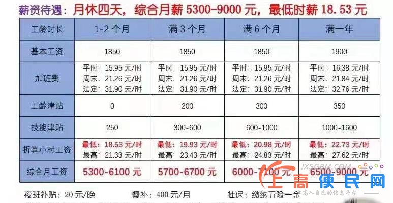 2.工資待遇5200元—7000元,滿一年以上薪資6500元-9000元,非流水線,每月15號發工資(繳納五險一金)